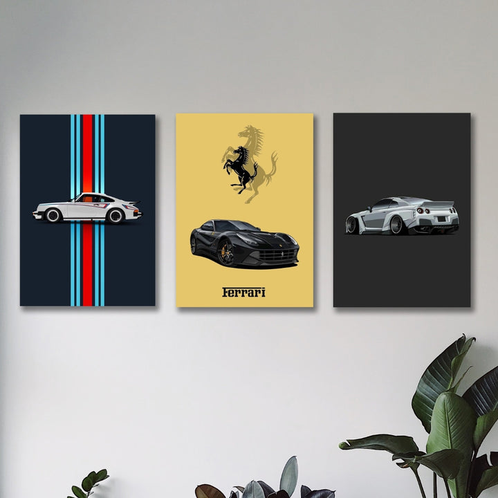 Premium Supercar Wall Art Set – Porsche | Ferrari | Nissan GTR